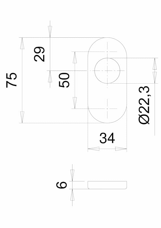 Schlüsselrosette Ares 0813/6403, innen, oval, ohne Stütznocken, Rundzylinder gelocht, 6mm, edelstahl, matt