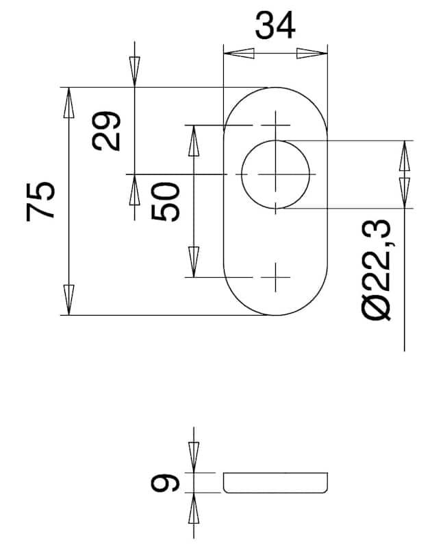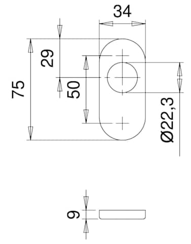 Schlüsselrosette Ares 0811/9403, innen, oval, ohne Stütznocken, Rundzylinder gelocht, 9mm, edelstahl, matt