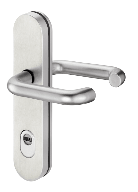 Vollblatt Sicherheits-Drückergarnitur Europa 8648/7203,Langschild,ES 2,mit Zylinderabdeckung 72/8,DIN Links-Rechts,edelstahl matt,Türstärke35-45,U-Form/U-Form