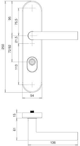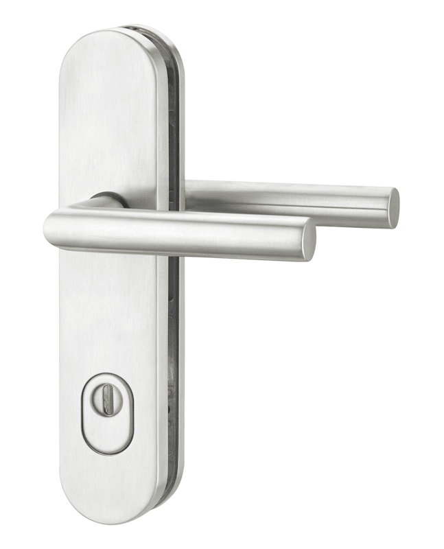 Vollblatt Sicherheits-Drückergarnitur Europa 8497/9203,Langschild,ES 2,mit Zylinderabdeckung 92/10,DIN Links-Rechts,edelstahl matt,Türstärke65-75,L-Form/L-Form