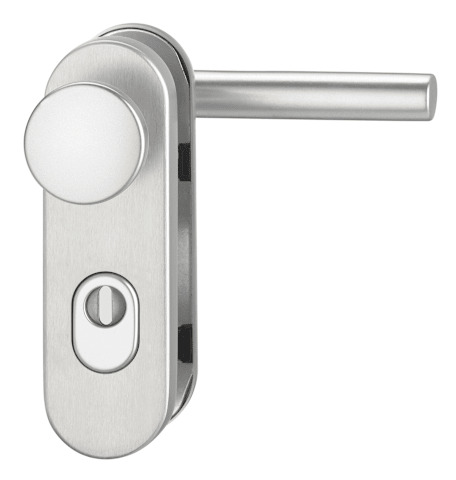 Vollblatt Sicherheits-Wechselgarnitur Logo 8795/0772,Kurzschild,mit Zylinderabdeckung 72/8,DIN Links-Rechts,edelstahl matt,Türstärke35-45,rund/Gehrung fest