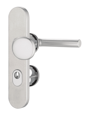 Schutz-Kombi-Wechselgarnitur Metis 8742/0272, Langschild/Rosette, 15mm, ES 1, mit Zylinderabdeckung, Profilzylinder gelocht, Entfernung 72mm, Vierkant 8mm, TS 35 - 45mm, grau, edelstahl, matt