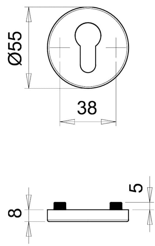 Schutzrosetten-Satz 6533/05, aufliegend, rund, 12mm, ES 0, ohne Zylinderabdeckung/Profilzylinder gelocht, edelstahl matt, Türstärke 65 - 68mm, Durchmesser Rosette (außen) 55mm