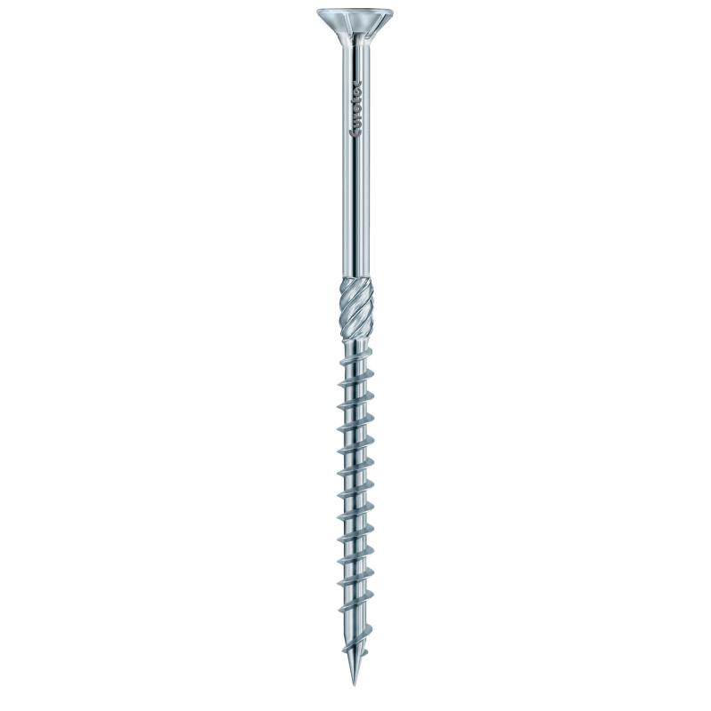 Bei der Paneltwistec AG aus blau verzinktem und gehärtetem Kohlenstoffstahl, handelt es sich um eine Holzbauschraube mit spezieller Schraubenspitze und Fräsrippen oberhalb des Gewindes. Die Schraube ist in den Ausführungen „Senkkopf“ und „Tellerkopf“ erhältlich.