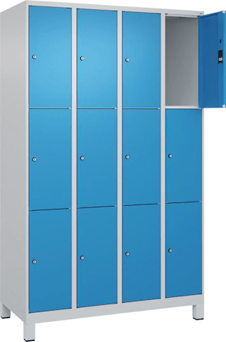 C+P Möbelsysteme Fächerschrank mit Füßen B1200xT500xH1950 Korpus RAL 7035 LichtgrauTüren RAL 5012 Lichtblau