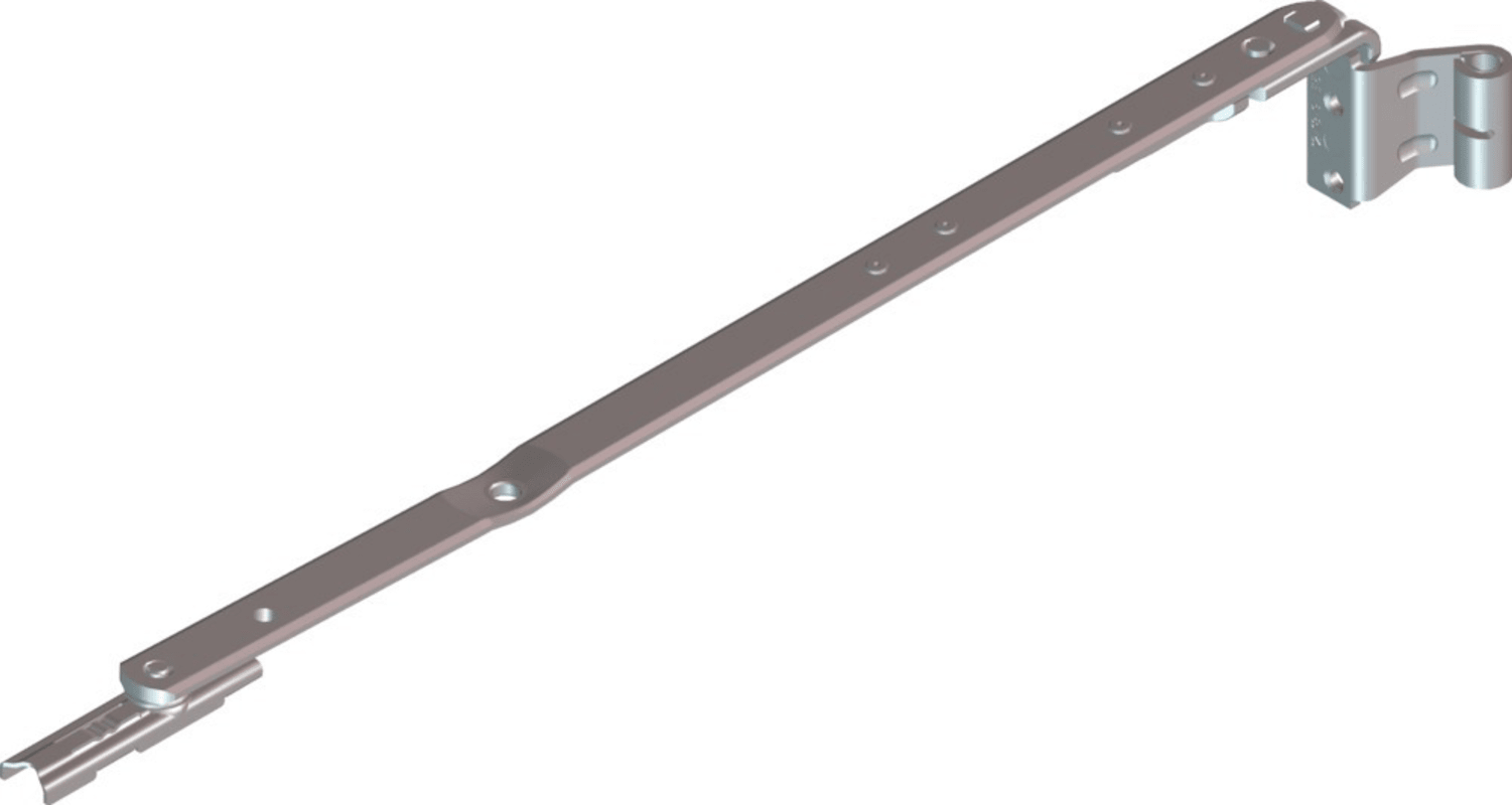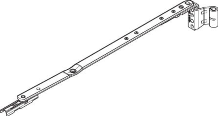 Roto Scherenarm NX; Produkttyp: Scherenarm; Produkttyp (Hersteller): Falzaxerarm; Material: Stahl; Befestigungsart: zum Einlassen; Falzluft: 12 mm; Nutlage: 13 mm; Überschlag: 21 mm; Flügelgewicht max