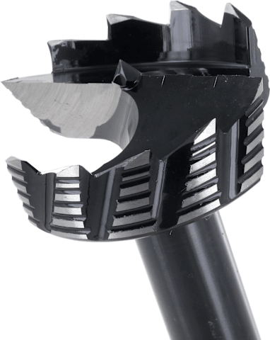 Bormax® WS. Zentrierspitze mit schneidender Geometrie. Zwei versetzt genutete Hauptschneiden sowie die gezahnte, mit Längsrillen versehene Umfangsschneide machen deutlich weniger Vorschubkräfte erforderlich und minimieren die Reibung sowie die dadurch entstehende Hitzeentwicklung. Sechskantschaft für eine bessere Kraftübertragung. Rasantes Bohren in Weichholz, europäisches Hartholz, Spanplatten, MDF Platten etc. Spitze im Freihandbetrieb und stationärem Einsatz. Durch sehr geringe Wärmeentwicklung unglaublich hohe Standzeit bei höchster Bohrqualität.