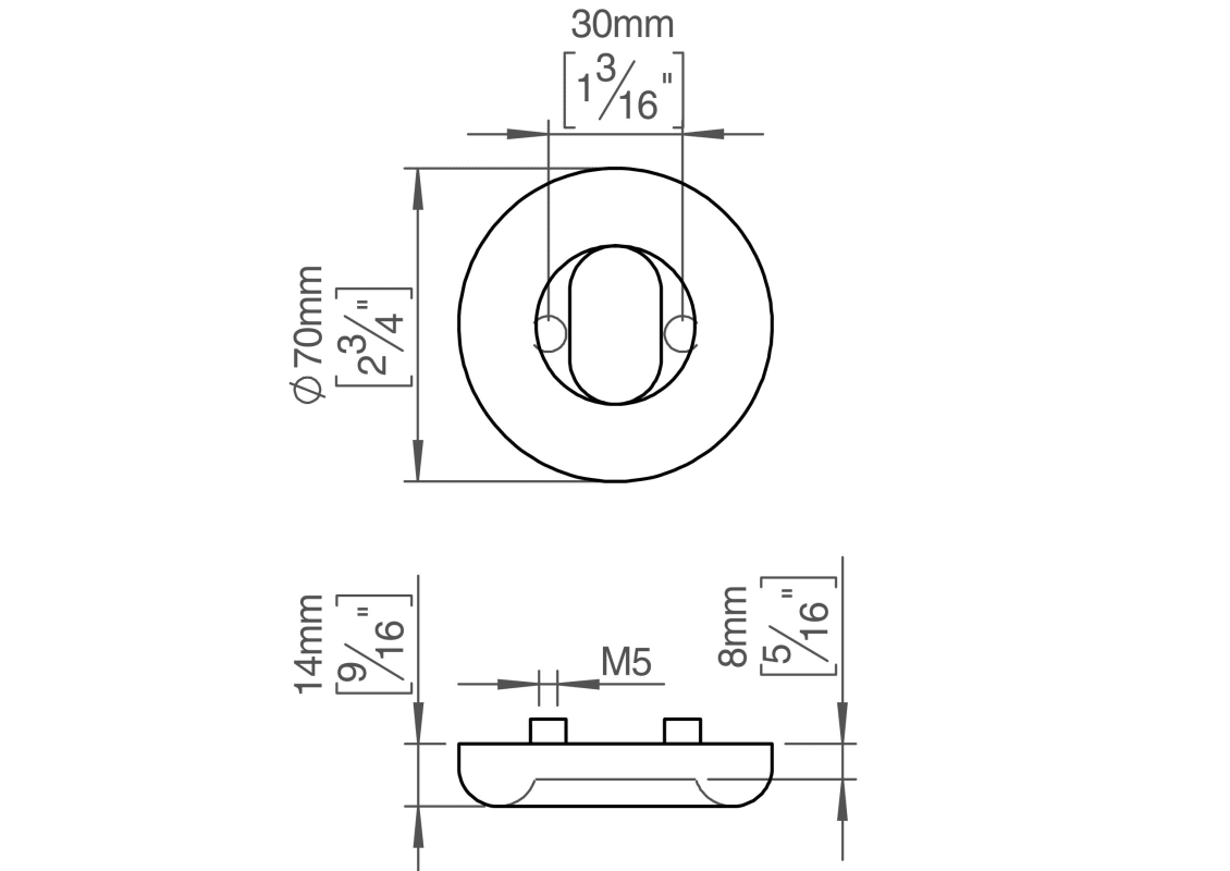 FAT external escutcheon f/oval cyl., Ø70x8mm, cc 30mm, satin finish. The FAT collection is a series of architectural hardware pieces designed by English industrial designer Tom Dixon. Manufactured in the highest quality marine grade, AISI 316 stainless steel, protecting against high levels of corrosion. W: 70mm H: 70mmxD: 14mm. 20-year warranty.