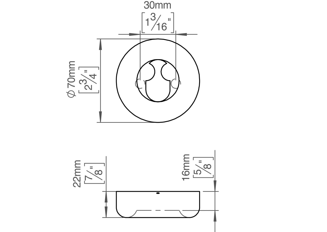 FAT escutcheon w/Rococo hole, Ø70x16mm, cc 30mm, satin finish, snap-on. The FAT collection is a series of architectural hardware pieces designed by English industrial designer Tom Dixon. Manufactured in the highest quality marine grade, AISI 316 stainless steel, protecting against high levels of corrosion. W: 70mmxH: 70mmxD: 22mm. 20-year warranty.
