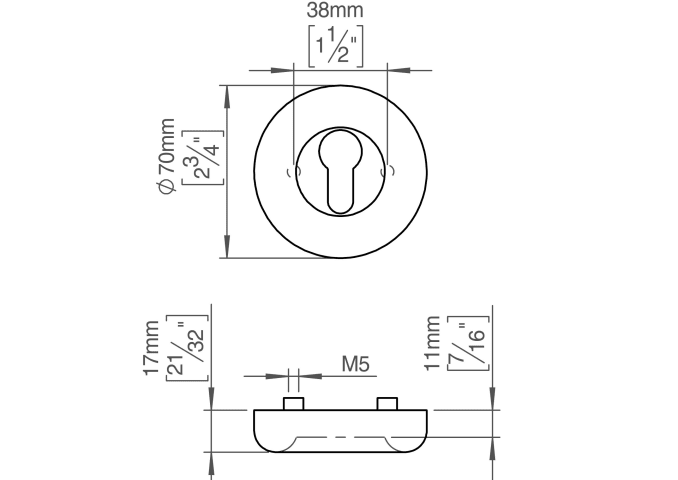 FAT ROSETTE M. SCHLÜSSELLOCH Ø70X11 CC38 AUSSEN SATINIERT (12900602110)