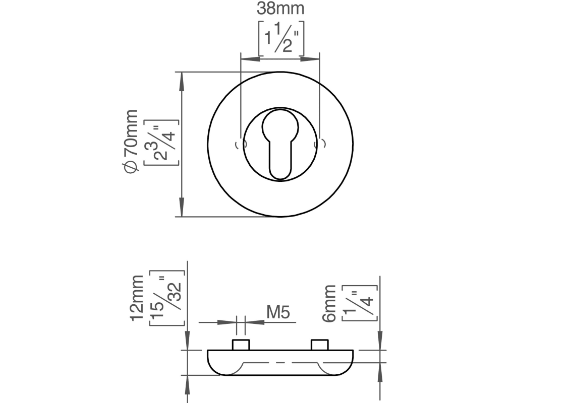 FAT ROSETTE M. SCHLÜSSELLOCH Ø70X6 CC38 AUSSEN SATINIERT (12900602060)