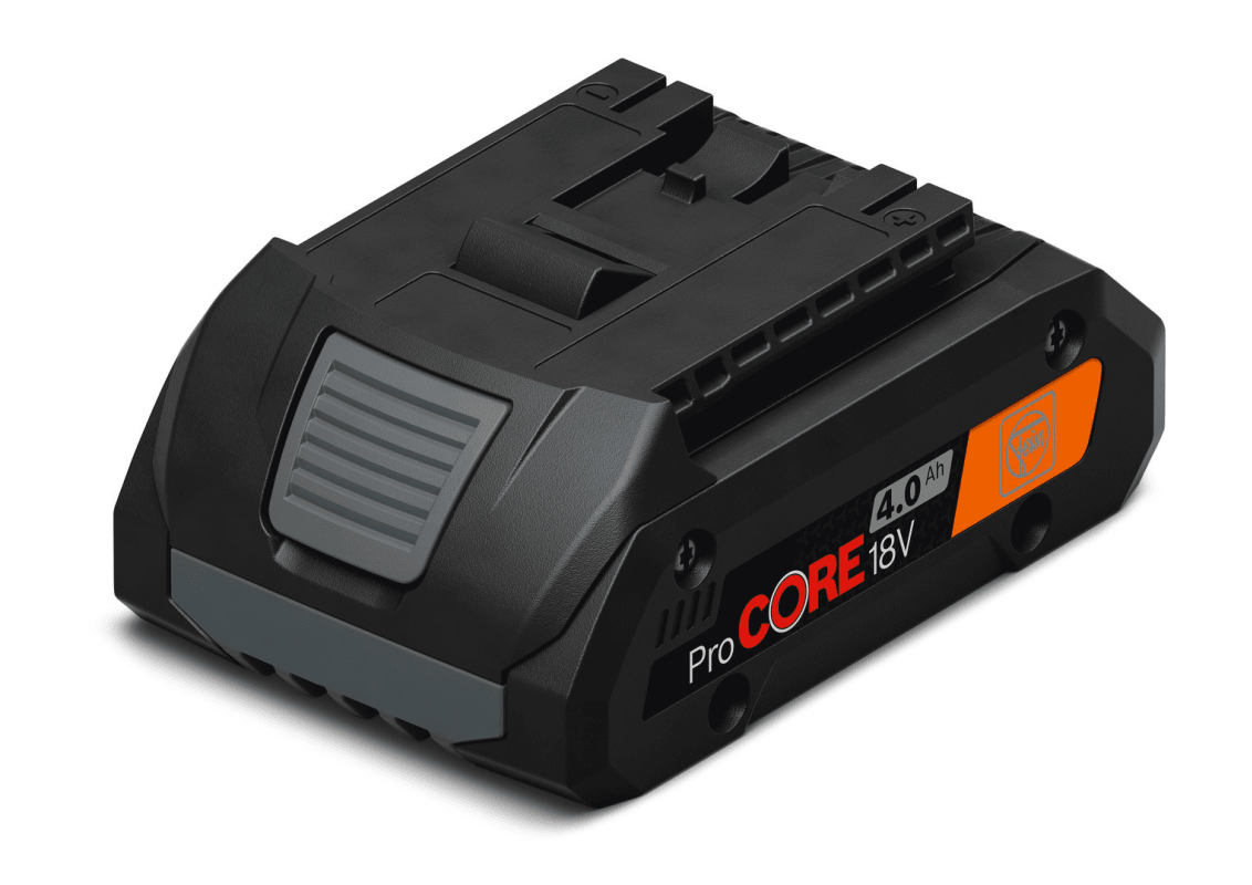 ProCORE Li-Ionen-Akku mit Highpower-Zellen, Ladestandsanzeige und „Electronic Cell Protection" (ECP). ECP schützt den Akku vor Überlastung, Überhitzung und Tiefenentladung. Die COOLPACK 2.0-Technologie sorgt für eine um 135 % längere Akkulebensdauer im Vergleich zu Akkus ohne COOLPACK-Technologie und ermöglicht damit längere Betriebszeiten. Kompatibel mit allen 18V Akku-Geräten mit AMPShare oder Bosch Professional 18V Akku-Schnittstelle.