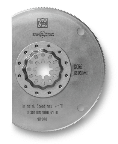 Bi-Metall für hohe Standzeiten. Metall-Verzahnung für Blech bis ca. 1 mm. Auch für Kunststoffe, GFK, Holz, Kitt und Buntmetalle. Plan zur Oberfläche arbeiten. Segmentiert, ideal zum Arbeiten in Ecken und an Kanten ohne Überschnitt.