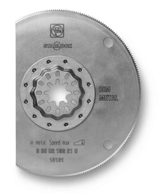 Bi-Metall für hohe Standzeiten. Metall-Verzahnung für Blech bis ca. 1 mm. Auch für Kunststoffe, GFK, Holz, Kitt und Buntmetalle. Plan zur Oberfläche arbeiten. Segmentiert, ideal zum Arbeiten in Ecken