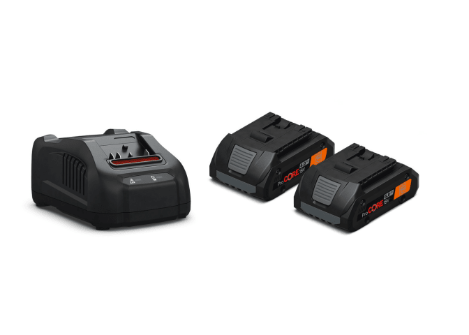 2 ProCORE Li-Ionen-Akkus mit Highpower-Zellen mit Schnellladegerät GAL 1880 CV. Kurze Ladezeiten dank des hohen Ladestroms von 8 Ampere, aktiver Luftkühlung und prozessgesteuerten Lademanagements. Benutzerfreundlich und platzsparend dank Vorrichtung zum Aufwickeln des Netzkabels. Für alle Akku-Packs mit AMPShare oder Bosch Professional 18 V Akku-Schnittstelle. Ladezeiten (80 % der max. Kapazität): GBA 18 V 2.0 Ah: 15 min., GBA 18 V 4.0 Ah: 25 min., GBA 18 V 5.0 Ah: 35 min., ProCore 18 V 4.0 Ah: 32 min., ProCore 18 V 8.0 Ah: 68 min., ProCore 18 V 12.0 Ah: 113 min.