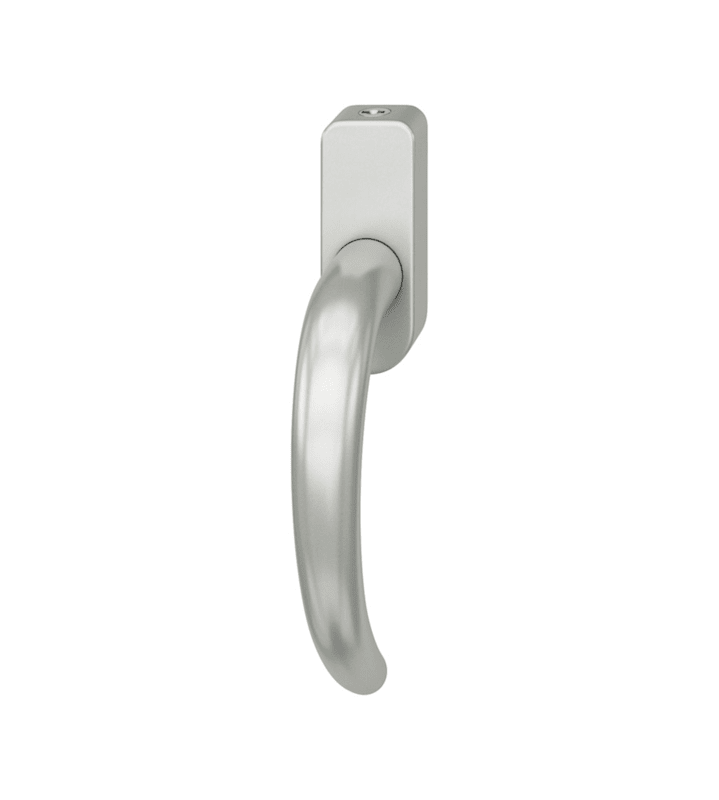 FSB Fenstergriff 34 1160; Produkttyp: Fenstergriff; Produkttyp (Hersteller): Fenstergriff; Ausführung: abschließbar; Rastung: 90°; Stütznocken: mit Stütznocken; Material: Aluminium; Montageart: aufliegend; Befestigungsart: verdeckt verschraubt; Anwendung: für nach innen öffnende Fenster und Fenstertüren; Zusatzausstattung: mit Schließzwang; Anzahl Schlüssel: 1 St.; Länge: 134 mm; Höhe: 66 mm; Befestigungsabstand: 43 mm; Form Rosette: oval; Breite Rosette: 32,5 mm; Höhe Rosette: 84,5 mm; Stärke Rosette: 21 mm; Durchmesser Stütznocken: 10 mm; Norm: DIN EN 13126-3,DIN 18267,DIN EN 1627; Gütesiegel: RAL-GZ 607/9; Einsatzbereich: Drehkipp; Fensterwerkstoff: Holz,Kunststoff,Aluminium; Vierkant: 7 mm; Stift vorstehend: 30 mm; DIN-Richtung: DIN Links-Rechts; Farbe: silberfarben; Farbton: naturfarben; Oberfläche: eloxiert; Schließung: gleichschließend
