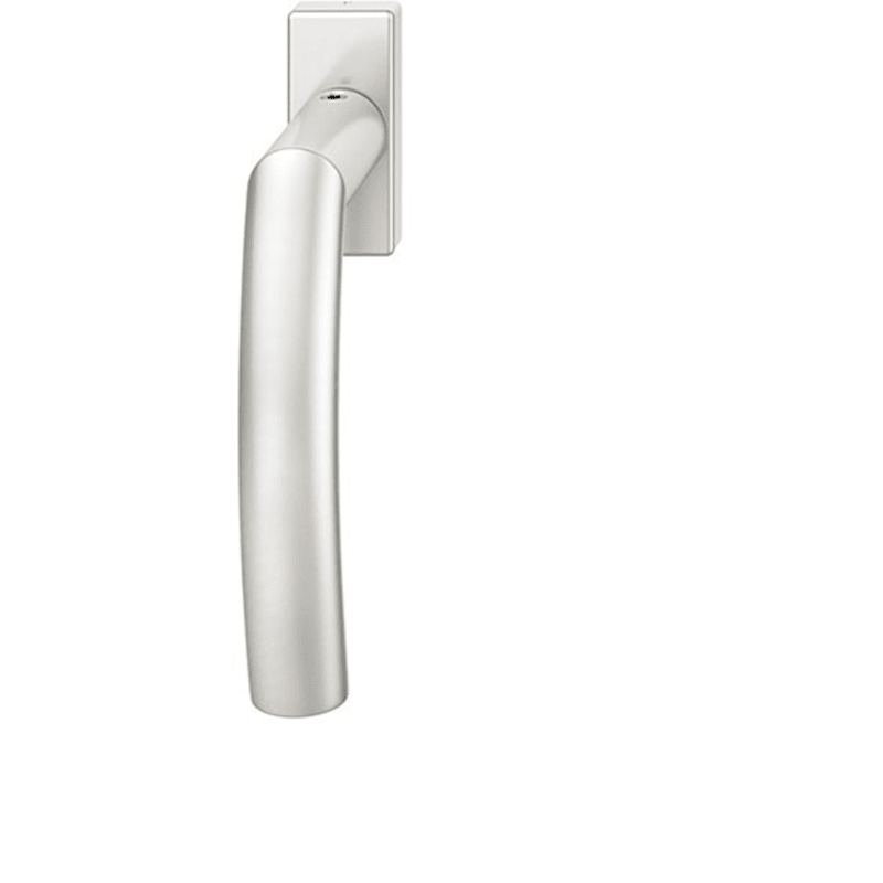 FSB Fenstergriff 34 1107; Produkttyp: Fenstergriff; Produkttyp (Hersteller): Fenstergriff; Ausführung: Standard; Rastung: 90°,Kugelrastung; Stütznocken: mit Stütznocken; Material: Aluminium; Montageart: aufliegend; Befestigungsart: verdeckt verschraubt; Anwendung: für nach innen öffnende Fenster und Fenstertüren; Design: Hartmut Weise; Länge: 124 mm; Höhe: 58 mm; Befestigungsabstand: 43 mm; Form Rosette: schmal eckig; Breite Rosette: 27 mm; Höhe Rosette: 62 mm; Stärke Rosette: 10 mm; Durchmesser Stütznocken: 10 mm; Norm: DIN EN 13126-3,DIN 18267; Gütesiegel: RAL-GZ 607/9; Einsatzbereich: Drehkipp; Fensterwerkstoff: Aluminium,Holz,Kunststoff; Vierkant: 7 mm; Stift vorstehend: 24-38 mm; DIN-Richtung: DIN Links-Rechts; Farbe: weiß; Farbton: verkehrsweiß; Oberfläche: farbig kunststoffbeschichtet