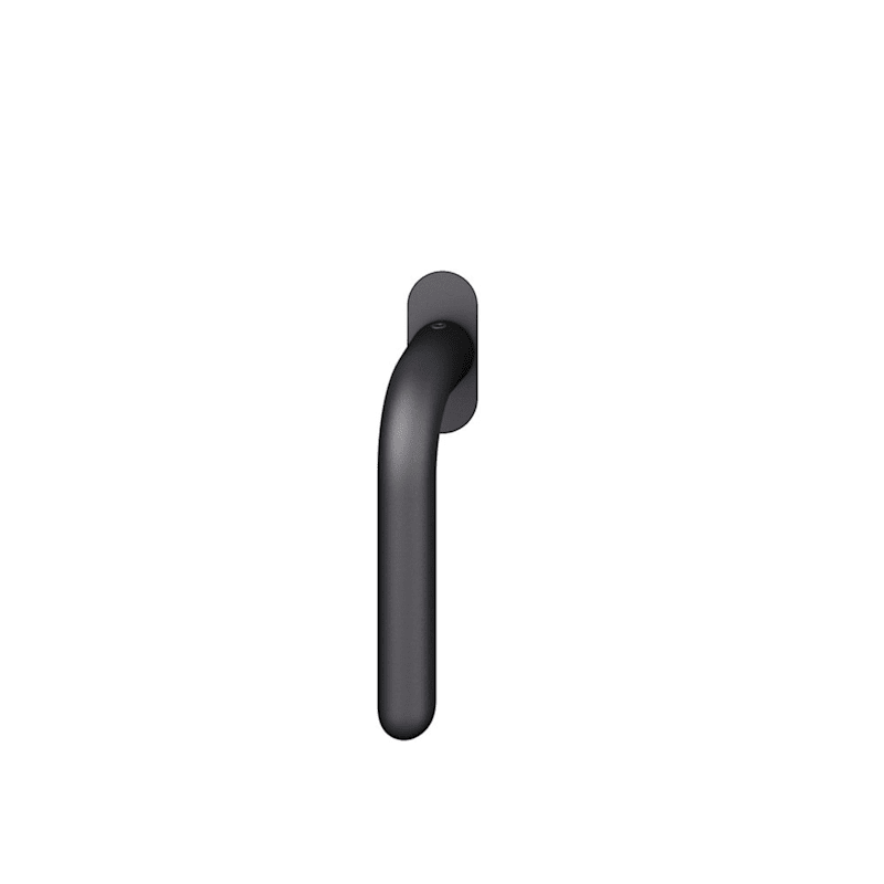 FSB Fenstergriff 34 1147; Produkttyp: Fenstergriff; Produkttyp (Hersteller): Fenstergriff; Ausführung: Standard; Rastung: 90°,Kugelrastung; Stütznocken: ohne Stütznocken; Material: Aluminium; Montageart: flächenbündig; Befestigungsart: verdeckt verschraubt; Anwendung: für nach innen öffnende Fenster und Fenstertüren; Länge: 120 mm; Höhe: 62 mm; Befestigungsabstand: 43 mm; Form Rosette: oval; Breite Rosette: 25,5 mm; Höhe Rosette: 60,5 mm; Stärke Rosette: 10,2 mm; Gütesiegel: RAL-GZ 607/9; Einsatzbereich: Drehkipp; Fensterwerkstoff: Holz; Vierkant: 7 mm; Stift vorstehend: 14-28 mm; DIN-Richtung: DIN Links-Rechts; Farbe: schwarz; Oberfläche: gestrahlt,eloxiert
