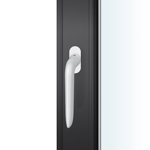 FSB Fenstergriff 34 1292; Produkttyp: Fenstergriff; Produkttyp (Hersteller): Fenstergriff; Ausführung: Standard; Rastung: 90°,Kugelrastung; Stütznocken: ohne Stütznocken; Material: Aluminium; Montageart: flächenbündig; Befestigungsart: verdeckt verschraubt; Anwendung: für nach innen öffnende Fenster und Fenstertüren; Befestigungsabstand: 43 mm; Form Rosette: oval; Breite Rosette: 25,5 mm; Höhe Rosette: 60,5 mm; Stärke Rosette: 10,2 mm; Gütesiegel: RAL-GZ 607/9; Einsatzbereich: Drehkipp; Fensterwerkstoff: Holz; Vierkant: 7 mm; Stift vorstehend: 14-28 mm; DIN-Richtung: DIN Links-Rechts; Farbe: weiß; Farbe (RAL): ähnlich RAL 9016; Oberfläche: farbig kunststoffbeschichtet