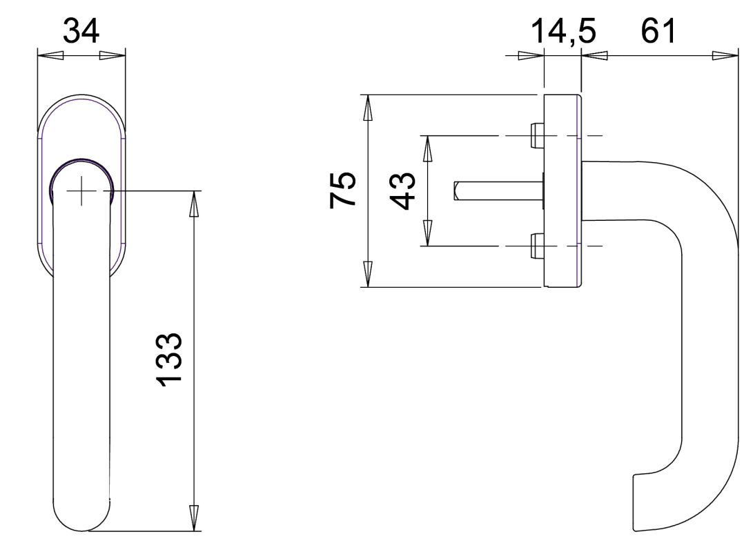 Dieckmann EST-Fenstergriff mit Metallabdeckung und, Kugelrasterung, Serie Janus, Stift 7x35mm,, 1013 SV 35, F00