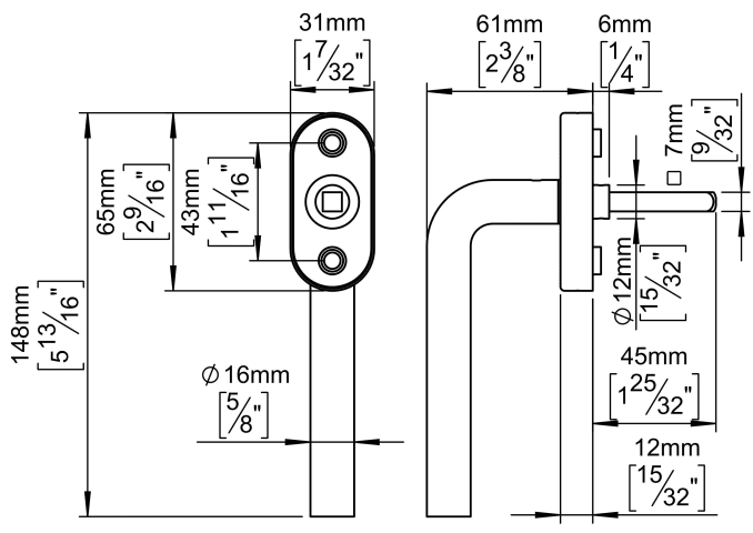 FENSTERGRIFF 16L 90°/180° 7X7 HOHE ROS 30X65 L=45 CHARCOAL (145420P4040)