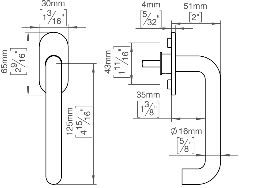 Knud Holscher collection, window handle 16U, 90°/180°, snap-on cover, 30x65mm, cc 43mm. Manufactured in the highest quality marine grade, AISI 316 stainless steel, protecting against high levels of co
