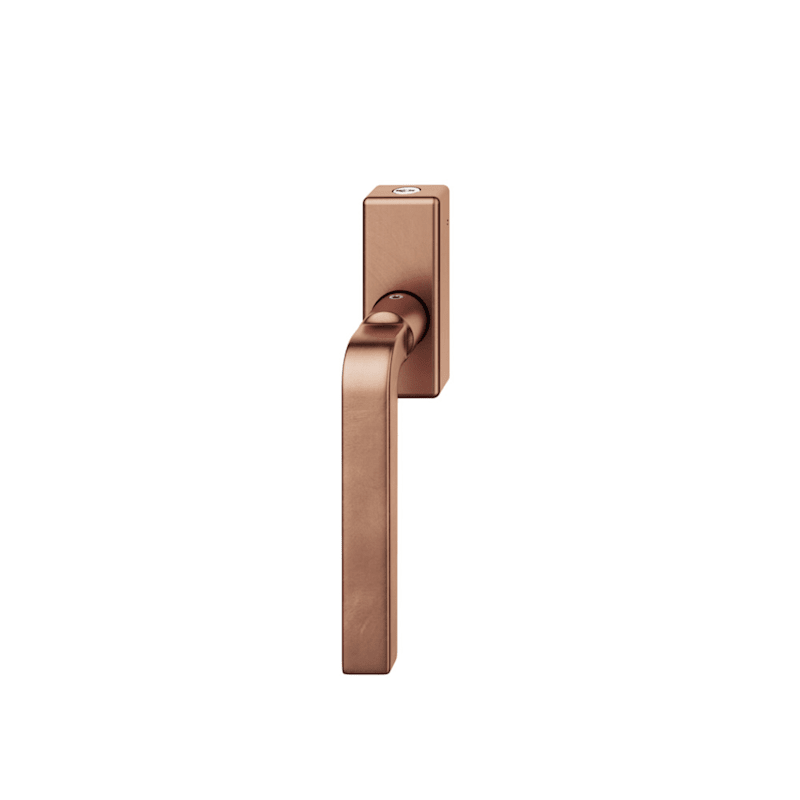 FSB Fenstergriff 34 1004; Produkttyp: Fenstergriff; Produkttyp (Hersteller): Fenstergriff; Ausführung: abschließbar; Variante TBT-Funktion: kippen vor drehen; Rastung: 90°; Stütznocken: mit Stütznocken; Material: Bronze; Montageart: aufliegend; Befestigungsart: verdeckt verschraubt; Anwendung: für nach innen öffnende Fenster und Fenstertüren; Design: David Chipperfield; Anzahl Schlüssel: 1 St.; Länge: 133 mm; Höhe: 57 mm; Befestigungsabstand: 43 mm; Form Rosette: eckig; Breite Rosette: 32,5 mm; Höhe Rosette: 84,5 mm; Stärke Rosette: 21 mm; Durchmesser Stütznocken: 10 mm; Norm: DIN EN 13126-3,DIN 18267,DIN EN 1627; Gütesiegel: RAL-GZ 607/9; Einsatzbereich: Drehkipp; Fensterwerkstoff: Holz,Kunststoff,Aluminium; Vierkant: 7 mm; Stift vorstehend: 30 mm; DIN-Richtung: DIN Links-Rechts; Farbe: braun; Farbton: hellbronze; Oberfläche: patiniert gewachst; Schließung: gleichschließend