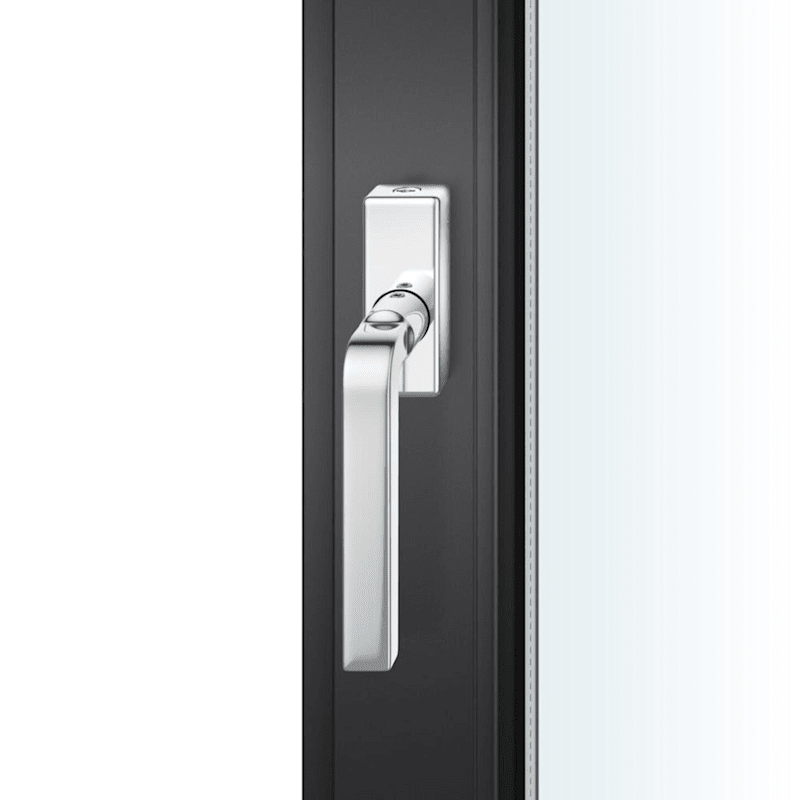 FSB Fenstergriff 34 1004; Produkttyp: Fenstergriff; Produkttyp (Hersteller): Fenstergriff; Ausführung: abschließbar; Rastung: 90°; Stütznocken: mit Stütznocken; Material: Edelstahl; Montageart: aufliegend; Befestigungsart: verdeckt verschraubt; Anwendung: für nach innen öffnende Fenster und Fenstertüren; Design: David Chipperfield; Anzahl Schlüssel: 1 St.; Länge: 133 mm; Höhe: 57 mm; Befestigungsabstand: 43 mm; Form Rosette: eckig; Breite Rosette: 32,5 mm; Höhe Rosette: 84,5 mm; Stärke Rosette: 21 mm; Durchmesser Stütznocken: 10 mm; Norm: DIN EN 13126-3,DIN 18267,DIN EN 1627; Gütesiegel: RAL-GZ 607/9; Einsatzbereich: Drehkipp; Fensterwerkstoff: Holz,Kunststoff,Aluminium; Vierkant: 7 mm; Stift vorstehend: 34 mm; DIN-Richtung: DIN Links-Rechts; Farbe: grau; Farbton: edelstahl; Oberfläche: poliert