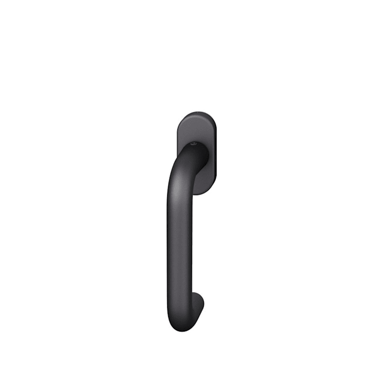 FSB Fenstergriff 34 1070; Produkttyp: Fenstergriff; Produkttyp (Hersteller): Fenstergriff; Ausführung: Standard; Rastung: 90°,Kugelrastung; Stütznocken: mit Stütznocken; Material: Aluminium; Montageart: aufliegend; Befestigungsart: verdeckt verschraubt; Anwendung: für nach innen öffnende Fenster und Fenstertüren; Länge: 123 mm; Höhe: 62 mm; Durchmesser: 20 mm; Befestigungsabstand: 43 mm; Form Rosette: oval; Breite Rosette: 32,5 mm; Höhe Rosette: 70 mm; Stärke Rosette: 10 mm; Durchmesser Stütznocken: 10 mm; Norm: DIN EN 13126-3,DIN 18267; Gütesiegel: RAL-GZ 607/9; Einsatzbereich: Drehkipp; Fensterwerkstoff: Aluminium,Holz,Kunststoff; Vierkant: 7 mm; Stift vorstehend: 24-38 mm; DIN-Richtung: DIN Links-Rechts; Farbe: schwarz; Oberfläche: gestrahlt,eloxiert