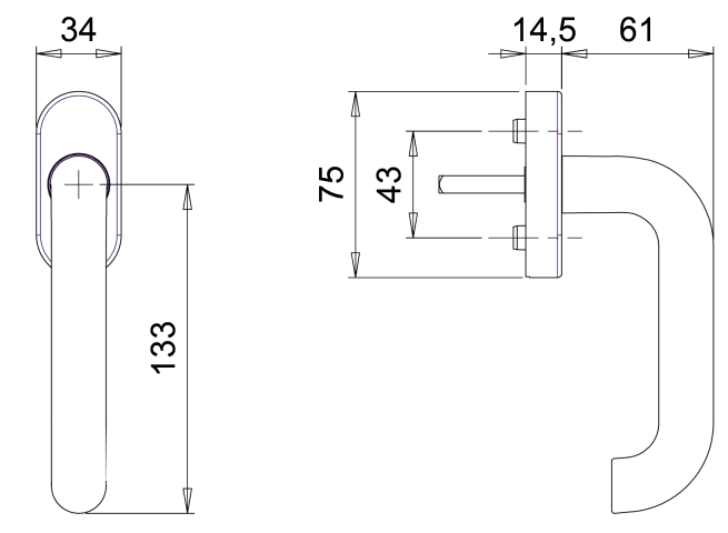 Dieckmann Alu-Fenstergriff mit Metallabdeckung und, Kugelrasterung, Serie Janus, Stift 7x35mm,, 1013 SV 35, F01