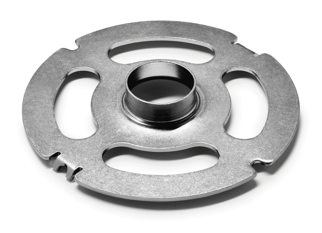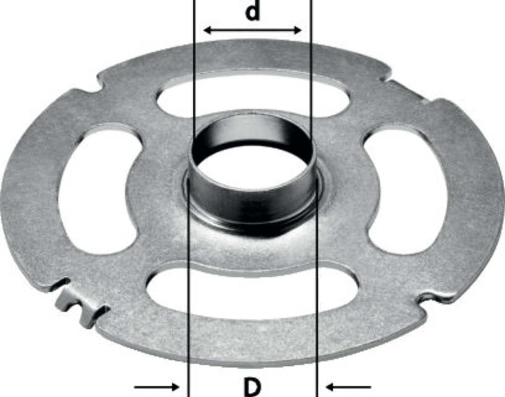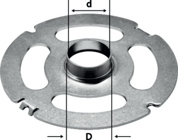 Copy ring for safe guidance of the router when milling with a template. The shape of the template does not matter.