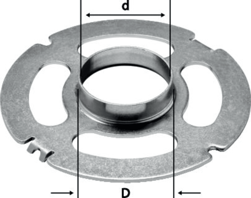 Copy ring for safe guidance of the router when milling with a template. The shape of the template does not matter.