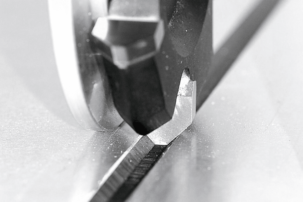 Milling depth precisely defined. Highly precise aluminium probe roller through which the milling depth is determined in special aluminium composite materials. The material thickness of the aluminium c