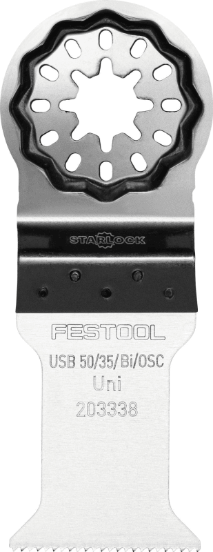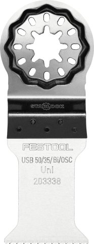The robust all-rounder. The multitool saw blade bi-metal with universal toothing. Versatility in applications for wood, coated wood, painted wood, composite materials, GRP, plasterboard, non-ferrous metals and plastics. Optimal cutting speed, high cutting quality and long service life. Robust even against nails in the wood. Ideally suited for plunge cuts.