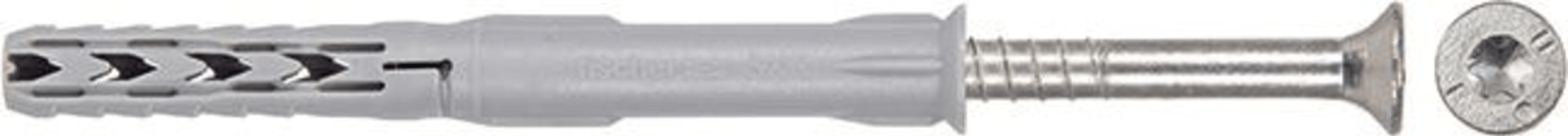 Langschaftdübel SXR-T• Mit galvanisch verzinkter fischer® Sicherheitsschraube mit T-Antrieb • Erster Langschaftdübel mit 10 mm Durchmesser • Für die Verwendung als Mehrfachbefestigung von nichttrag