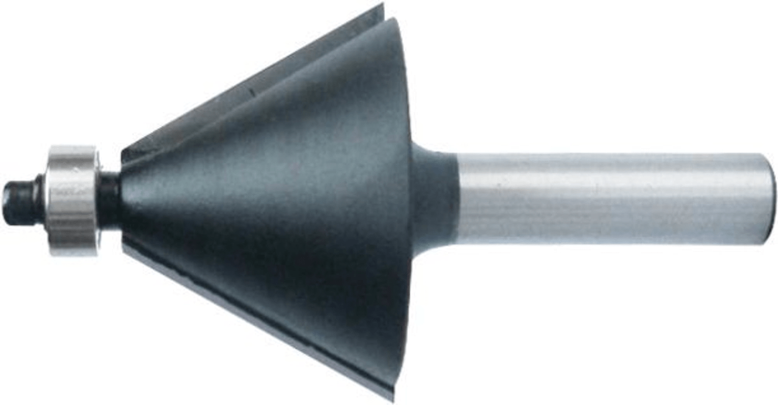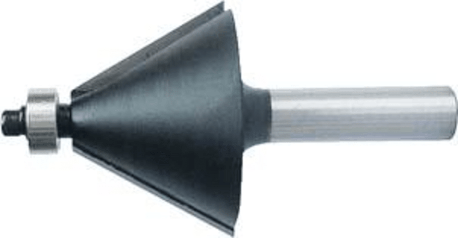 HW-Fasefräser• 2 HW-bestückte Schneiden • Mit Anlaufkugellager • Rechtslauf • Schaft-Ø 8 mm • Zum Anfasen • Für Weichholz, Hartholz und beschichtete Plattenwerkstoffe