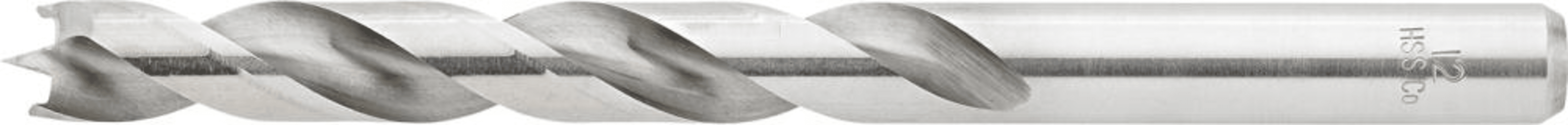 Holzspiralbohrer HSS• HSS (M2), vollgeschliffen, für hohe Standzeit • Zentrierspitze geschliffen • Zwei Vorschneider und zwei Hauptschneiden • Vier geschliffene Führungsfasen für besonders guten Sp