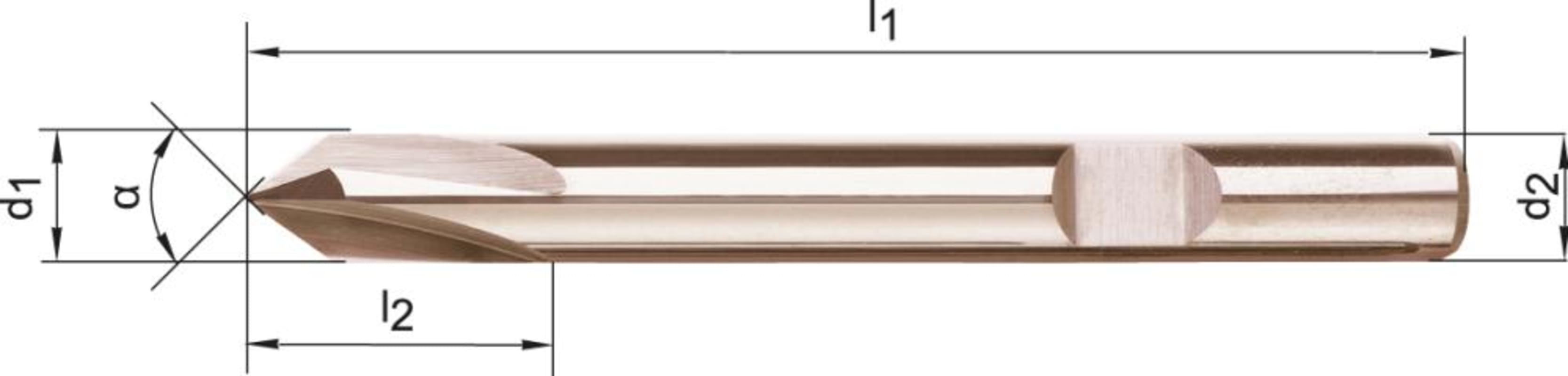 VHM-NC-Entgratfräser, blank• Ausführung: kurz • VHM • Typ UNI • 4 Schneiden • Werksnorm • DIN 6535-HB • Zum Entgraten und Anfasen von Kanten • Mit Zentrumschnitt • Spitzenwinkel 90°