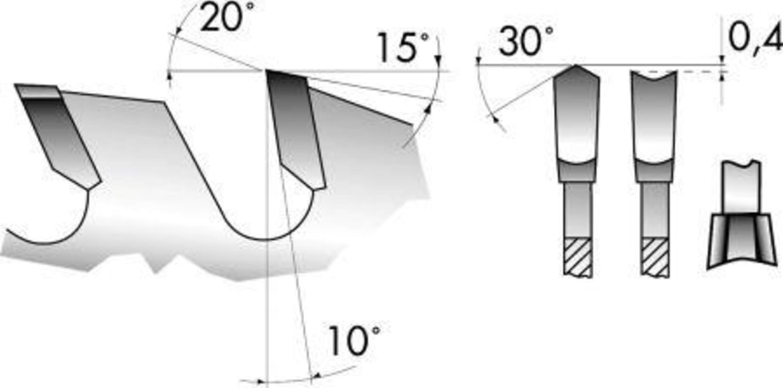 HW-Kreissägeblatt Dach-Hohlzahn positiv• Hartmetall-bestückte Schneiden • Geräuschgedämpft • Für kunstharzbeschichtete Plattenwerkstoffe • Zur Verwendung auf allen horizontalen oder vertikalen K