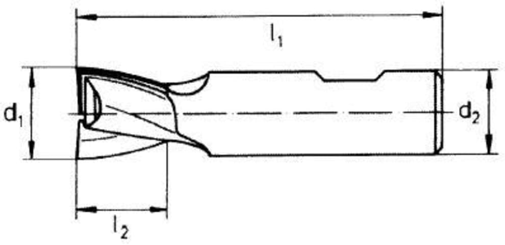 Langlochfräser (Bohrnutenfräser), blank• Ausführung: kurz • HSS-Co8 • Typ N • 2 Schneiden • DIN 327-D • DIN 1835-B • Drallwinkel 30° • Zum Fräsen von Keil- und Passfedernuten Ø e8 für Passu