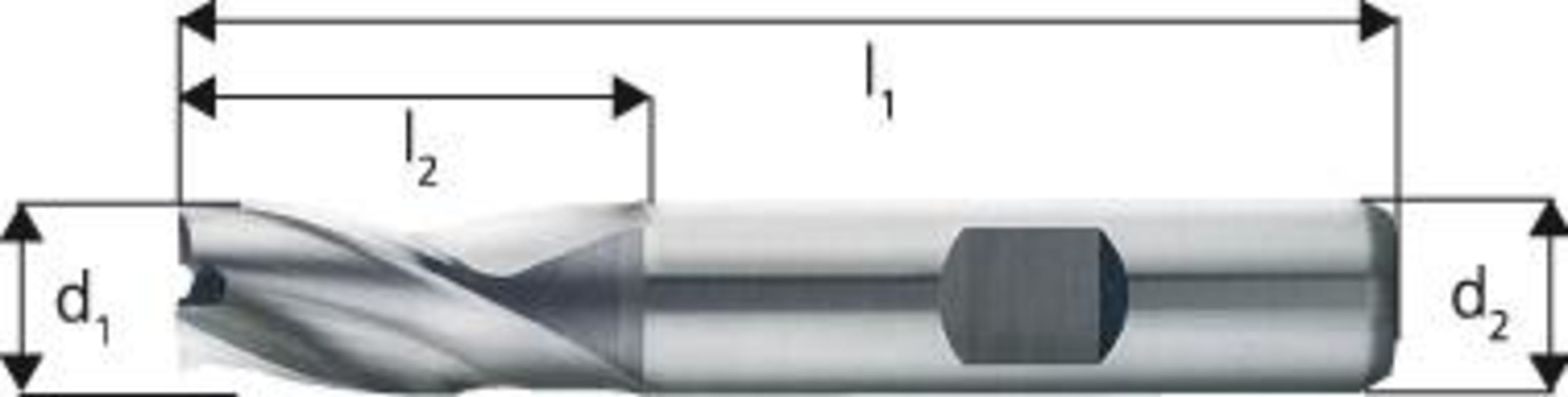 Langlochfräser (Bohrnutenfräser), blank• Ausführung: kurz • HSS-Co8 • Typ N • 3 Schneiden • DIN 327 • DIN 1835-B • Drallwinkel 30° • Zum Fräsen von Keil- und Passfedernuten Ø e8 für Passung P9