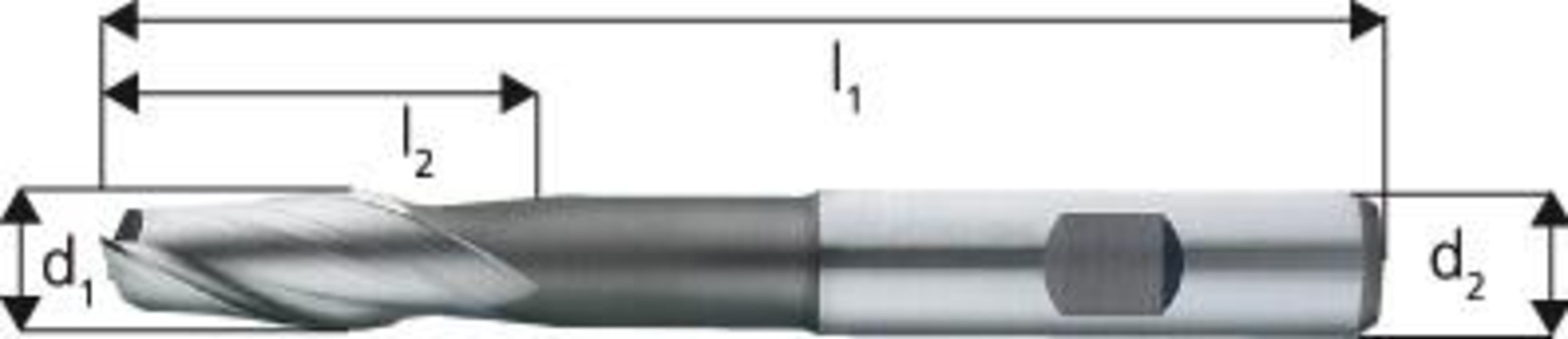 Langlochfräser (Bohrnutenfräser), blank• Ausführung: lang • HSS-Co8 • Typ N • 2 Schneiden • Werksnorm • DIN 1835-B • Drallwinkel 30° • Zum Fräsen von Keil- und Passfedernuten Ø e8 für Passu