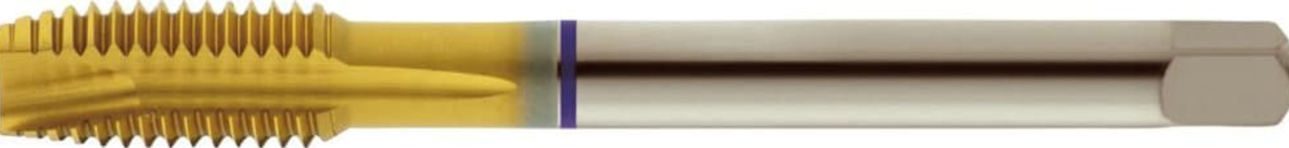 Durchgangsloch-Maschinengewindebohrer, TiN-beschichtet• Metrisches ISO-Gewinde DIN 13 • DIN 371 • HSS-E • Form B mit Schälanschnitt (3,5–5 Gang) • Gerade genutet • Toleranz ISO 2 6H • 2 x D Durc