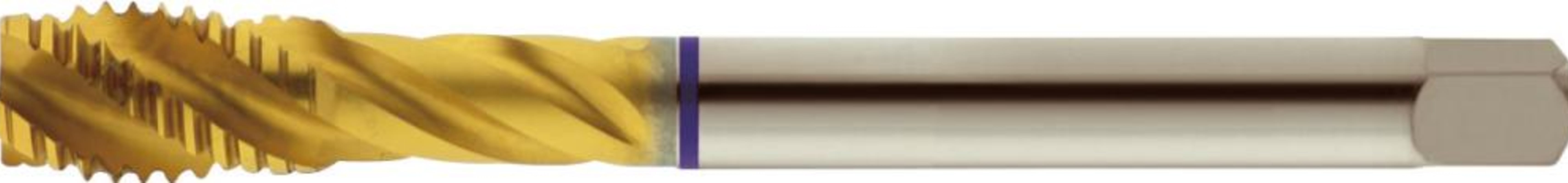 Grundloch-Maschinengewindebohrer, TiN-beschichtet• Metrisches ISO-Gewinde DIN 13 • DIN 371 • HSS-E • Form C (2–3 Gang) • Rechtsspirale 40° • Toleranz ISO 2 6H • 2 x D Grundloch