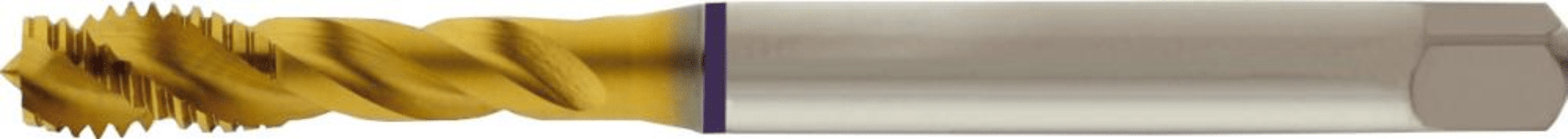 Grundloch-Maschinengewindebohrer, TiN-beschichtet• Metrisches ISO-Gewinde DIN 13 • DIN 371 • HSS-E • Form C (2–3 Gang) • Rechtsspirale 40° • Toleranz ISO 2 6H • 2 x D Grundloch