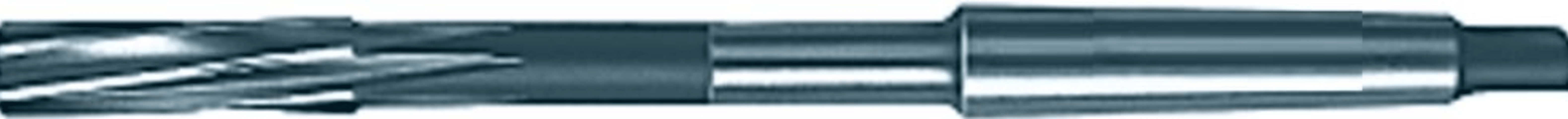 Maschinenreibahle, blank• HSS-E • DIN 208-B • Bohrungstoleranz H7 • Linksspirale 7° • Durchgangsloch • Langes Schneidenteil • Kurzer Anschnitt • Ungleiche Zahnteilung