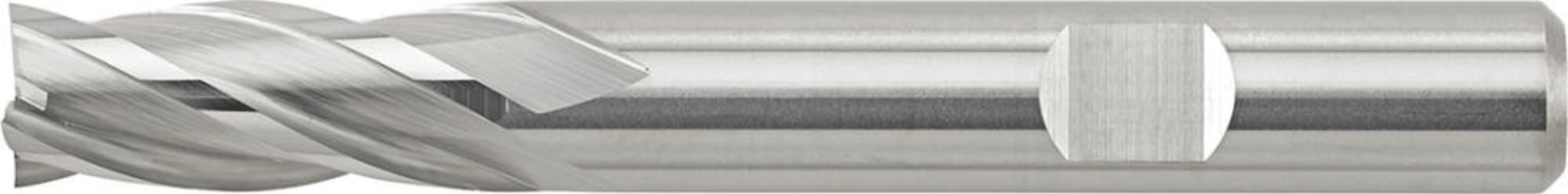 VHM-Schaftfräser, blank• Ausführung: lang • VHM • Typ N • 4 Schneiden • DIN 6527-L • DIN 6535-HB • Zum Umfangsfräsen, Besäumen, Schlichtfräsen, für die universelle Bearbeitung • Drallwinkel 3