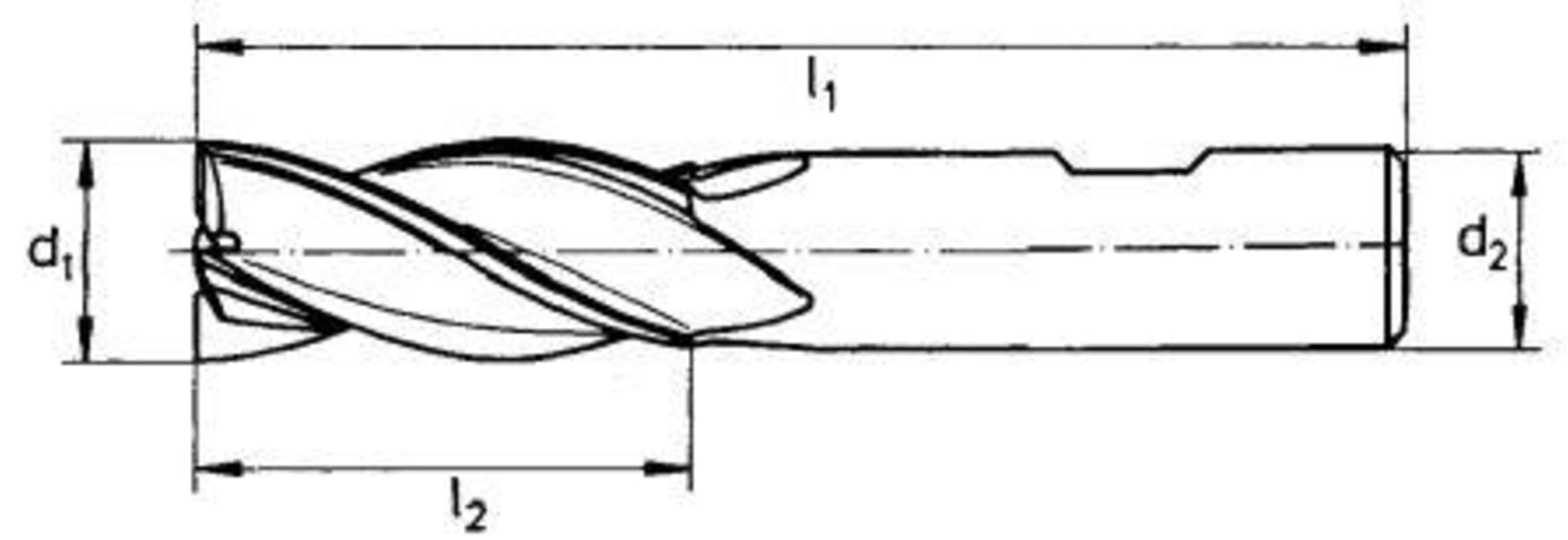 VHM-Schaftfräser, blank• Ausführung: lang • VHM • Typ N • 4 Schneiden • DIN 6527-L • DIN 6535-HB • Zum Umfangsfräsen, Besäumen, Schlichtfräsen, für die universelle Bearbeitung • Drallwinkel 3