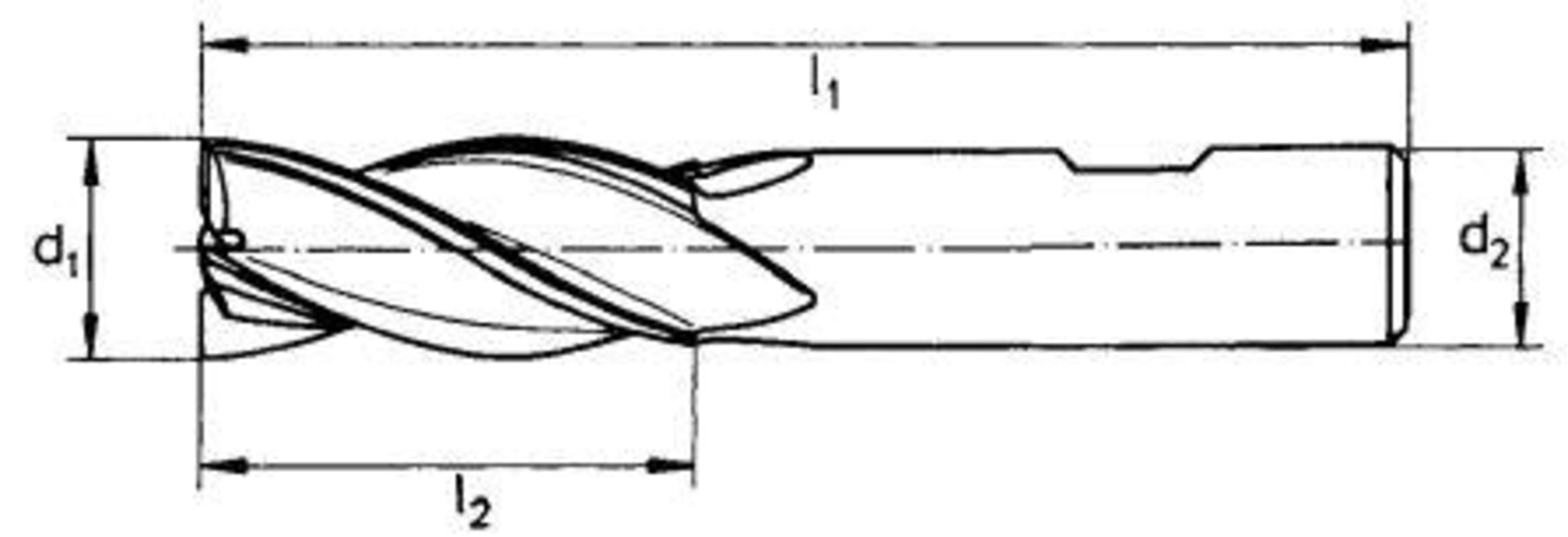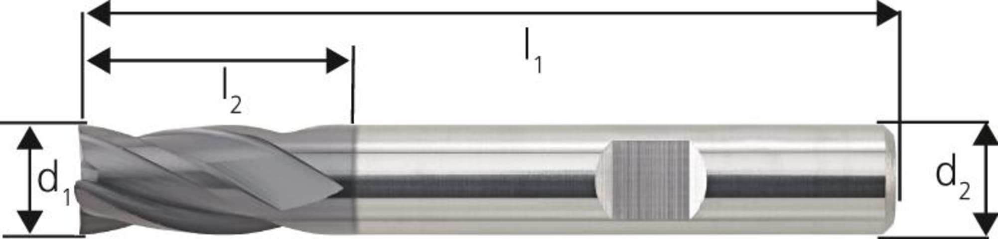 VHM-Schaftfräser, TiAlN-beschichtet• Ausführung: kurz • VHM K10/K20 • Typ N • 4 Schneiden • DIN 6527 • DIN 6535-HB • Zum Umfangsfräsen, Besäumen, Schlichtfräsen, für den universellen Einsatz •