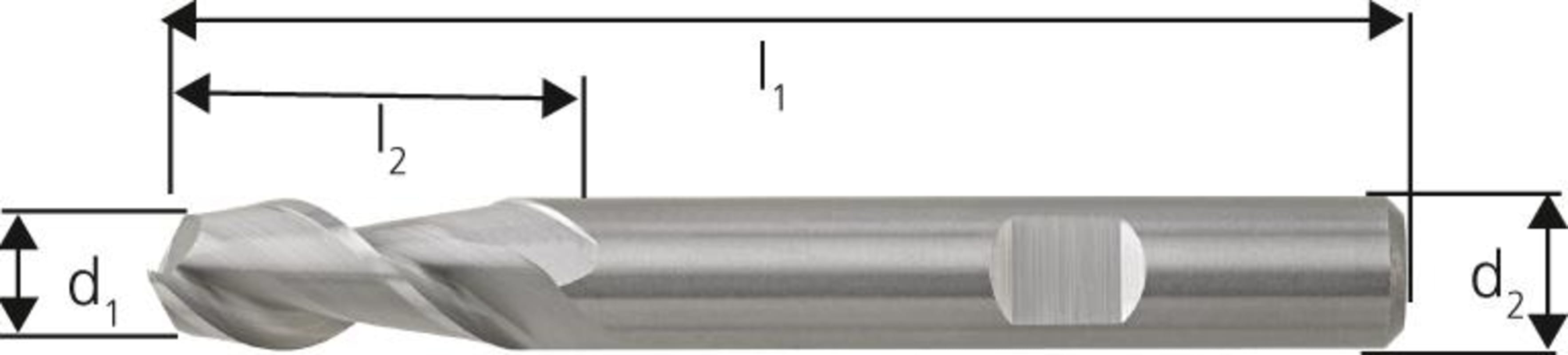 VHM-Schaftfräser für Aluminium, blank• Ausführung: lang • VHM UF • Typ W • 2 Schneiden • DIN 6527 • DIN 6535-HB • Drallwinkel 45° • Zum Fräsen von Keil- und Passfedernuten, Besäumen, Schlich